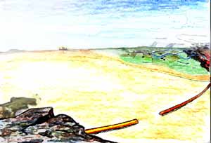 I n der Nacht kamen die Skors, und sie nahmen ein kleines Mädchen aus derselben Familie, die bereits einen Mann verlor. Die Gruppe hastete sofort hinterher, mit Lorz als Skeorks an der Spitze, und sie mußten in einen unterirdischen Gang, den die Monster bis zum Dorf gegraben hatten. Nach langer, langer Kriecherei kamen sie in einen großen Gang, der wohl Teil einer Mine war. Da fanden sie die Leiche des Mädchens, Hirn und Wirbelsäule waren herausgerissen. Landors Ring glimmte, denn der Astralraum war hier verseucht. Da griffen zwei alienartige Skors die Gruppe an: Der Erste lauerte solange, bis X’Lerul einen Feuerball auf ihn warf, und schnellte aus den Flammen der Gruppe entgegen. Lorz sprang ihm entgegen und biß ihn in den Hals, doch das Vieh schlug zeitgleich im Flug mit vier gräßlichen Hieben zurück und verletzte Lorz schwer. Der Zweite kam von hinten - die Gruppe kämpfte um ihr überleben gegen Gegner von ungeahnter Schnelligkeit und Kraft – und siegte knapp. Als sie zurückkehrten, war die Sonne schon aufgegangen, und ein reisender Beduine begrüßte sie im Dorf. Sein Name sei Koltas, er war ein stolzer Troll und geübt mit dem Schwert - sein Mizekätzchen ein Skeorks. Landor und Lorz lernten die ohnsche Sprache, und den anderen – bis auf Solan – schenkte Koltas einen magischen Wurm, Laktas genannt, der ins Ohr kroch und dem Träger die ohnsche Sprache perfekt verlieh – gegen zwei permantente Schadenspunkte. Laktas seien gebräuchlich, damit Sklaven die Sprache verstünden. Außerdem kaufte er X’Lerul den Kopf des Skors gegen eine beträchtliche Summe Orichalkum ab. Die Dörfler baten die Gruppe, den letzten Skors zu töten, der offenbar noch übrig war. Die Gruppe versprach, zumindest die Gänge zu versiegeln, und ging erneut unter die Erde, wobei Koltas mit ihnen ging. Tatsächlich wurde die Gruppe verfolgt, der Ring Landors glimmte schwach aus unterschiedlichen Richtungen, und in den Minen machten sie hinter einer Wand eine abscheuliche Entdeckung: Eine T’Skrang-Sklavin war in ein zähes, schwarzes Zeug geleimt und trug eine Larve in sich, die wohl von den Skors kam. Ihre beiden Kameraden seien von den Skors getötet worden und sie selbst sei verschleppt und fürchterlich zugerichtet worden. Die Gruppe befreite die Sklavin namens X’Tamina und verschloß die Gänge. X’Lerul wagte sich daran, ihren Parasit zu entfernen – eine gefährliche Operation, bei der sie fast gestorben wäre.