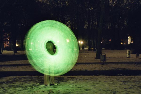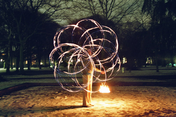 So sieht es aus wenn man Poi mit Feuer spielt und die Fotos in Langzeit belichtet.