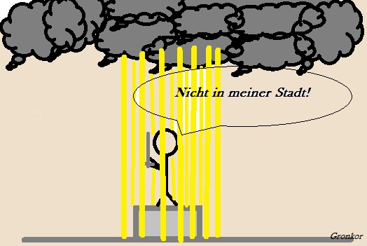 Während wir fast schon unsere Sorgen um die Stadt vergaßen, zog in der Ferne ein heftiges Gewitter auf. Pechschwarze Wolken näherten sich der Stadt, allerdings war es eine sehr eigenartige Struktur. So schien es ein größerer Wolkenhaufen zu sein, ringsrum allerdings war der Himmel klar. Dies konnte nichts natürliches sein, der Feind kommt! Die Wolken bedeckten den ganzen Himmel über der Stadt, es donnerte und Blitze schossen nieder. Einige Gebäude wurden zerstört, viele Namensgeber starben dabei und überall brach Feuer aus. Gronkor stellte sich auf den Altar und brüllte gen' Himmel "Nicht in meiner Stadt!", als ein Kreis aus Blitzen um den Altar nieder ging und die schwarzvermummte Gestalt in diesem aus den Wolken niederschwebte. Ein weiterer Blitz schoss neben ihm nieder, zerberstete den Altar und tötete Gronkor auf der Stelle "Es ist vollbracht, mein Meister wird wieder auferstehen!". Mit all unseren Kräften und der Hilfe einiger Bewohner schafften wir es ihn in die Flucht zu schlagen, obwohl ich mir nicht sicher bin, ob er nicht einfach von uns gelangweilt war.