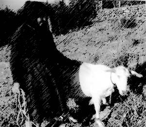 Nach ein paar angenehmen Zügen aus meiner Pfeife pfiff ich ein altes Hirtenlied, die Melodie war mir so gekommen, als ich auf dem Hügel zur untergehenden Sonne eine Gestalt erkannte, gebügt, mit Hörnern. Ich nahm noch einen tiefen Zug und sah genauer - die Ziege der alten. Die Zügel hinter sich herschleifend kam sie an, gelockt vom Feuer.