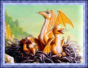 Ich selbst habe in meinem Leben, das nun immerhin schon gute 400 Jahre währt, erst ein einziges Mal einen Drachen gesehen: Ich erinnere mich genau an jenen Tag in den Caucavia-Bergen, als ein riesiges Geschöpf, dessen Ausmaße ich nicht zu schätzen vermag, sich aus den entfernten Wäldern am Ende des Horizonts empor schwang und sich uns näherte. Seine riesigen Schwingen bewegten sich langsam und kraftvoll, und doch hatte dieser Drache eine unglaubliche Geschwindigkeit, doch ich glaube, er hätte schneller fliegen können, denn er machte alles andere als einen erschöpften Eindruck. Die Haut des Wesens schimmerte in einer Mischung aus orange und gelb und glitzerte in der Abendsonne. Seine bloße Anwesenheit zog meine Brüder und mich in seinen Bann, fasziniert, wie angewurzelt, ließen wir alle unsere Tätigkeit, welche auch immer und egal, wir gern oder ungern wir sie nun taten, fallen. Der Drache, ich vermute, er war schon ausgewachsen, schwebte über uns hinweg, immer noch hafteten all unserer Blicke an ihm. Dann, als er fast außer Sichtweite war, drehte er seinen Kopf und ließ einen gewaltigen Schrei los, der durchs Tal hallte wie ein grollender Donner.(Hört sich für mich wie eine Begegnung mit der Orangenen Königin an... - Lejaria Nightshade)
