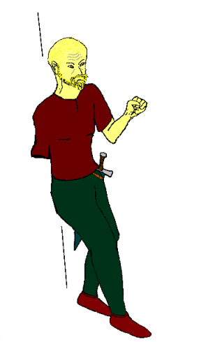 Hangol Pontifor? Noch nie gehört. Aber mein Gedächtnis ist auch nicht mehr das beste. Blond, hmm, ja da gibt es viele. Wie? Es könnte auch sein, dass er sich Joe nannte? Hmmhmm, ja, da kenn ich tatsächlich jemanden. Aber nur flüchtig. Das war als ich noch Besitzer eines kleinen Gasthauses in Axalekso war. Da hatte er sich für ein paar Wochen bei mir einquartiert. Er suchte Arbeit, aber nach der ganzen Sache mit den Diebstählen hat ihn wohl das Lösegeld gelockt und er hat sich in Richtung Eidolon aufgemacht, um diesen Dieb "Die Katze in der Nacht" zu erwischen. Seinen Begleiter, Jim, hab ich noch öfter gesehen. Die beiden kamen wohl über die Tylonberge aus Richtung Daiche. Jim könnte euch sicherlich mehr über Joe erzählen, oder wie er auch heißt. Oder vielleicht auch ein Mann namens Dradon, der zur gleichen Zeit hier war. Wenn ich mich recht entsinne ist auch er eine Weile mit Joe unterwegs gewesen. -- Borbol Grunzbauch im "Ruf des Reichtums" in Eidolon