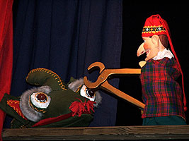 Nachdem diese Vorbereitung abgeschlossen ist, zieht der Kasperle von Dorf zu Dorf, lockt Kleinkinder und ihre Eltern mit günstigen Preisen in die Vorstellung, die Manege des Grauens.