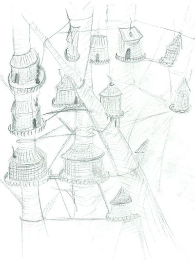 dies bereitet dem Zwerg einige Probleme, denn hier aufgewachsenen ßlail aber scheint diese art zu wohnen ganz normal und sie hat den praktischen Vorteil, dass sie sich in den hoch gelegenen hütten nur vor solchen tieren schützen mussten die fliegen oder klettern konnten nicht vor denen die den Boden nicht verlassen wie zum beispiel die K'teek'pai. Das der zwerg nicht alleine in den Dschungel muss begeleitet Mara ihn außerdem konnte sie ihm helfen da sie wusste wo die K'teek'pai zu finden waren und was man tun konnte um sie ohne ihr bemerken zu beobachten.