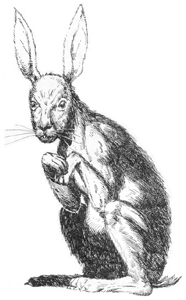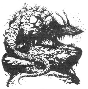 Meine Reise begann irgendwo bei den Scolbergen. Nach einem vergnüglichen Flug in die Weiten des Himmels und einem herrlichem Wälzen im grünen Gras vernahm ich das Splittern eines Baumes und einen Laut, der mich an Troll mit Zahnschmerzen erinnerte. Garlen sei Dank hatte ich einen Flachmann mit bestem Trollschnapps dabei den ich auch prompt dem schnaubenden Troll anbot, wie es Sitte ist bei uns im Moron Clan. Bewaffnet mit einer Hellebarde und gekleidet in nichts als einem Lederrock stellte sich der einhörnige Troll vor als Rabrokaar Schwarzhorn vom Schwarzhorn Clan. Sein Dorf wurde überfallen und geplündert, die Einwohner ermordet, er selber verlor bei einem hinterhältigen Angriff eins seiner stolzen Hörner, so erzählte er mir bei unserem ersten gemeinsamen Mahl. Unterbrochen wurden wir von mehreren seltsamen Vierbeinern mit dolchartigen Vorderzähnen. Hier eine kleine Zeichnung dieser Kaninchen, wie ich sie fortan nennen werde.